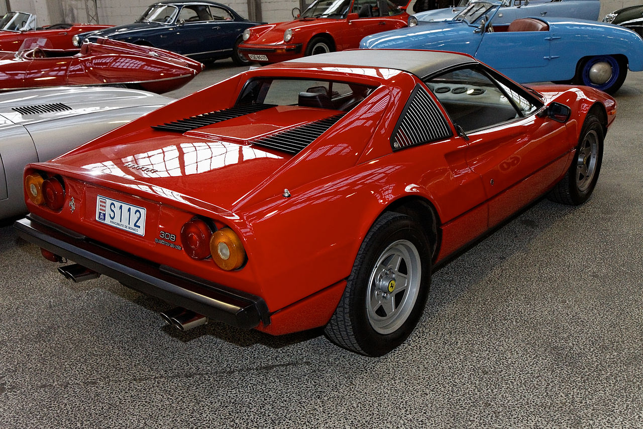 A Ferrari 308 GTS QV (short for &quot;quattrovalvole,&quot; or four valves) at the Une Ferrari 308 GTS QV (abréviation de Une Ferrari 308 GTS QV (abréviation de "quattrovalvole" ou quatre soupapes) à la
