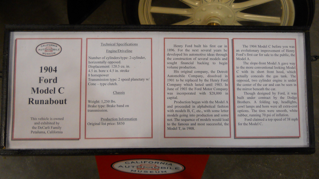 1904 Ford Model C Runabout. California Automobile Museum <translate id="378246665dcc6949f75d0a19c14156b8"></translate>